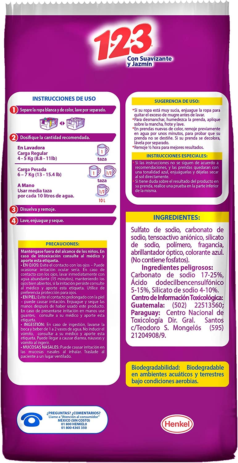 - 1-2-3 MAXI PODER con Suavizante y Jazmín 10 kg
