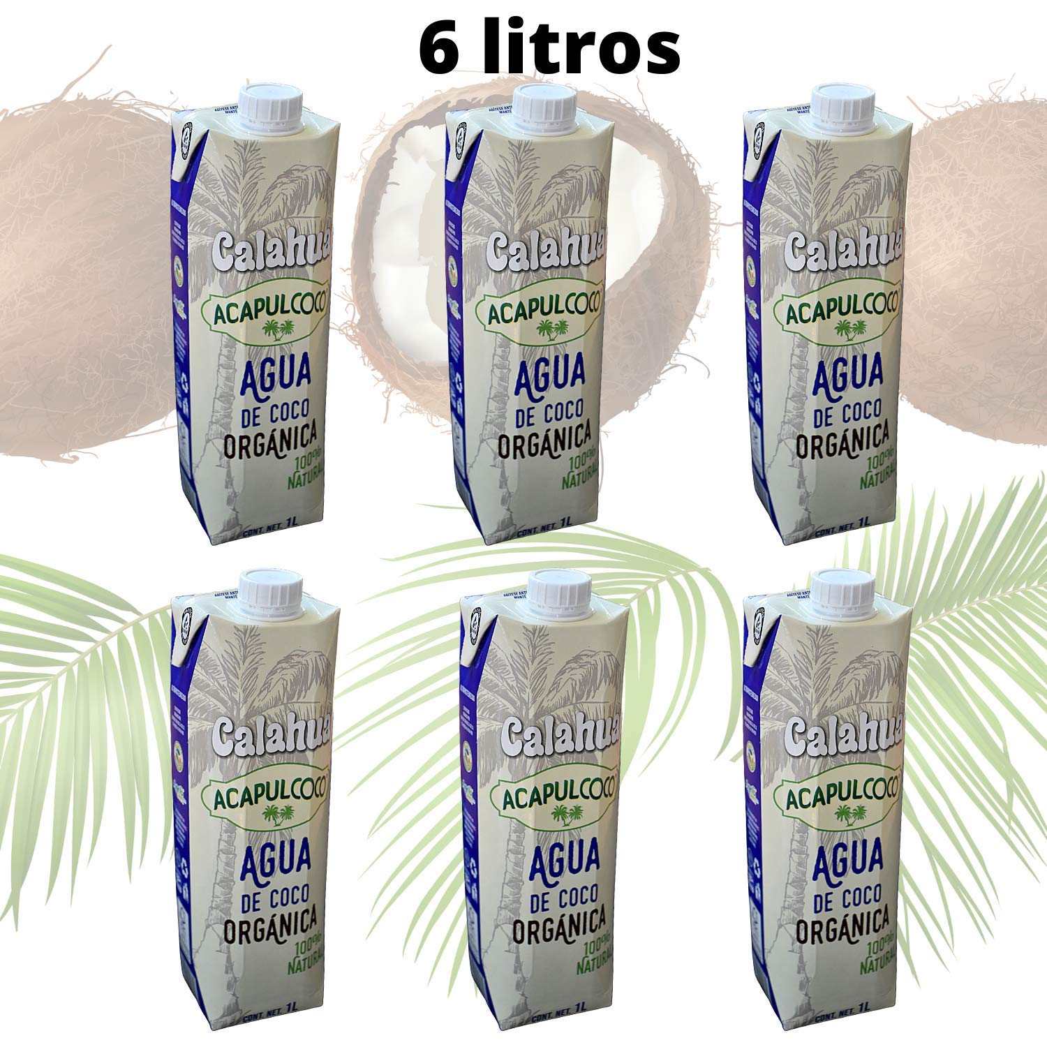 Acapulcoco Agua de Coco Orgánica Acapulcoco 6 piezas de1 litro, bebida hidratante Natural, producto Mexicano. Certificación Kosher