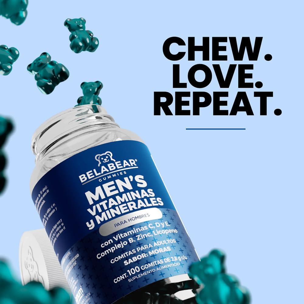 BELABEAR - Belabear | Multivitamínico para hombres, Vitamina C, D y E, Complejo B, Zinc y Licopeno sabor Moras | Contiene 100 gomitas