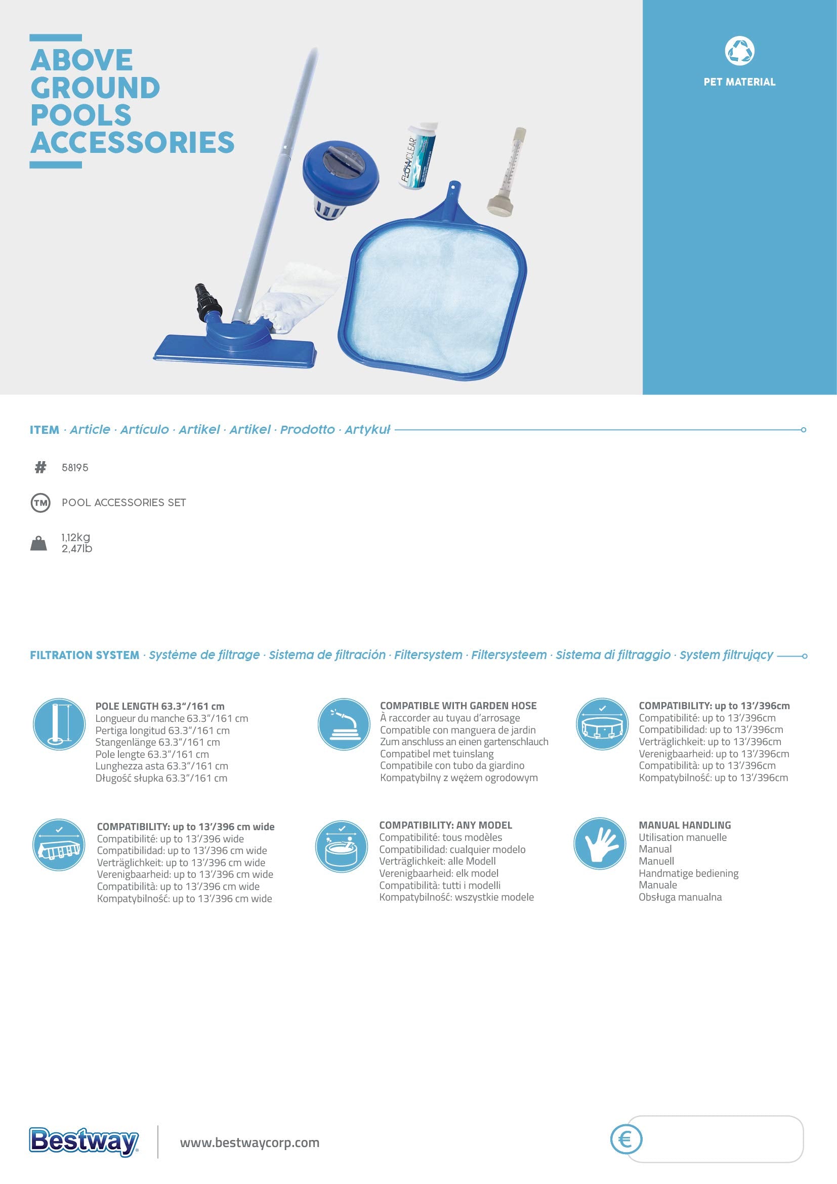 Bestway Kit Limpieza Limpiafondo Mantenimiento Alberca 7 Pzs