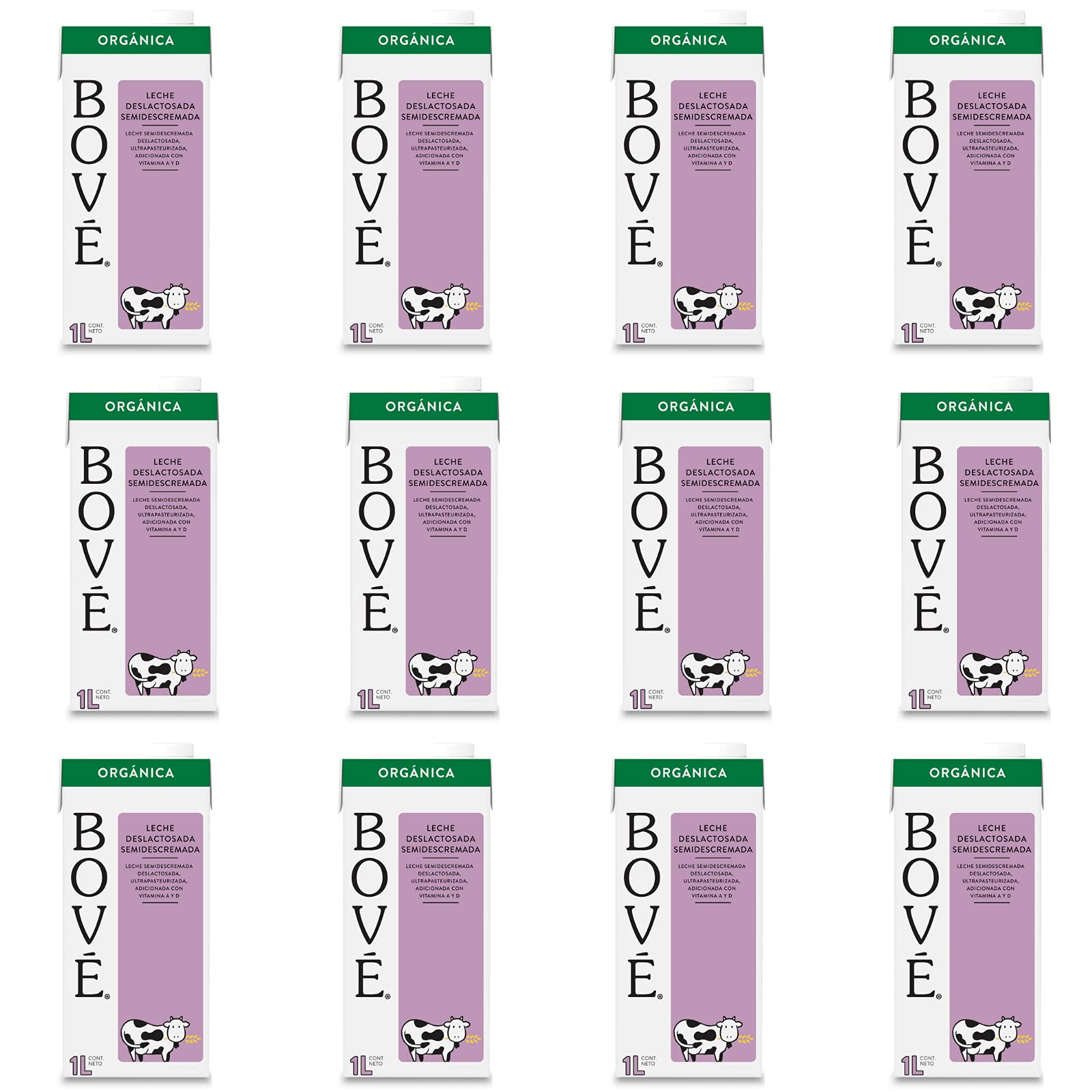 Bové Leche Deslactosada semi-descremada, 1L x 12 piezas, Ultrapasteurizada, Adicionada con Vitamina A y D
