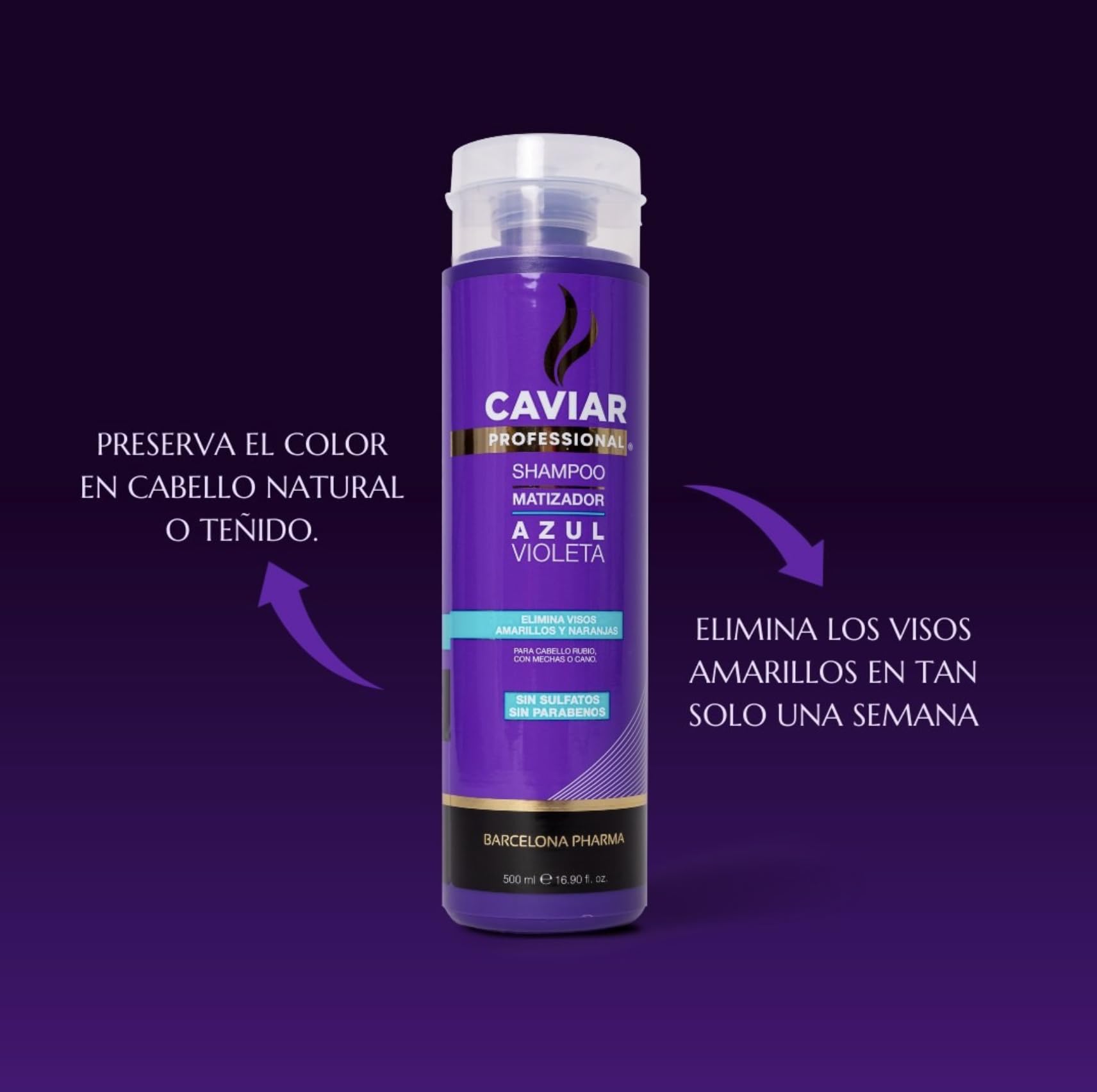 Caviar Professional, Shampoo sin sulfatos y parabenos, Duo shampoo matizador, Reparación total con extracto de caviar negro, Ecológico y Cruelty free