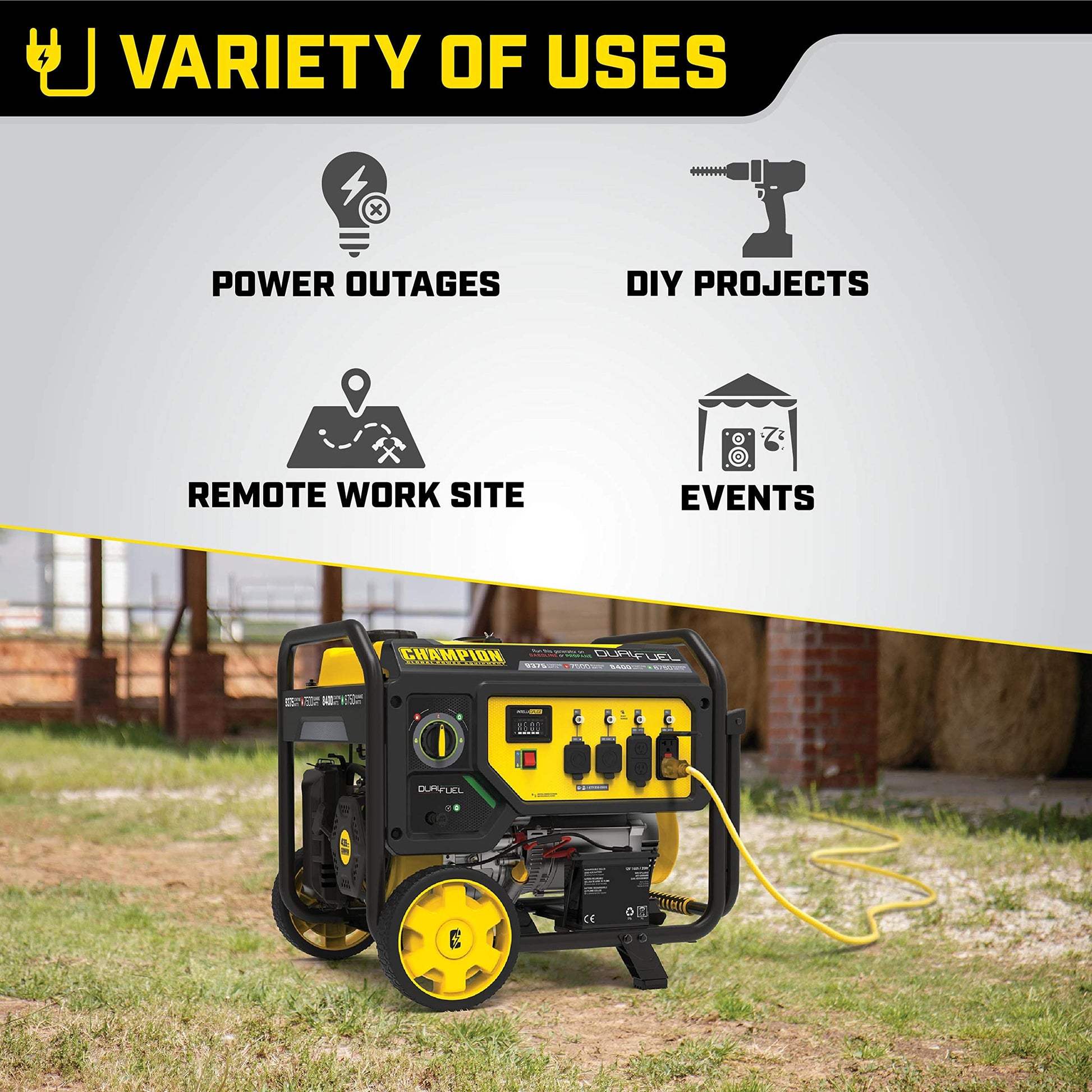 Champion Power Equipment 9375-W Generador portátil de Combustible Doble, Arranque eléctrico