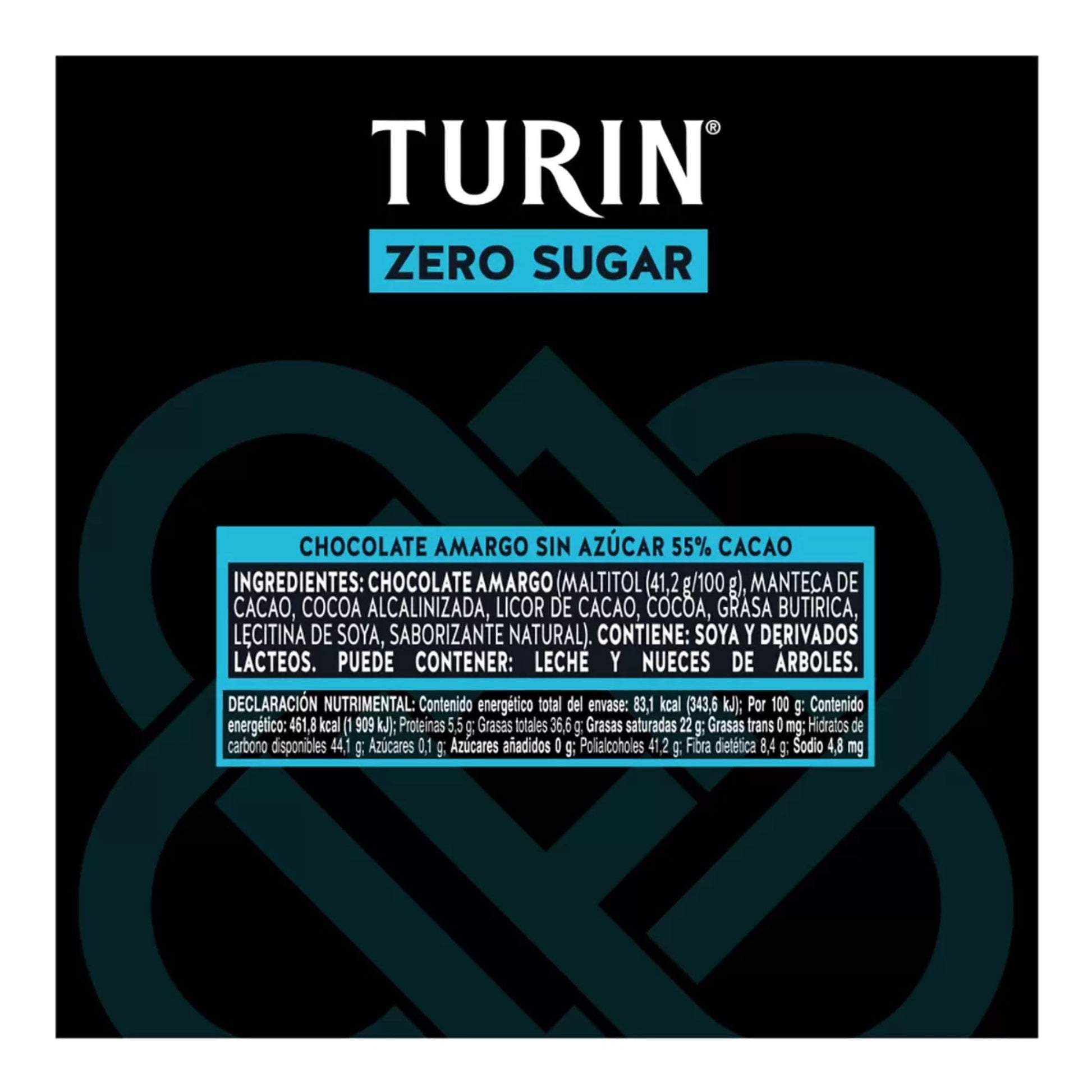 Chocolate Amargo Zero Azúcar Turin 80 piezas 400g