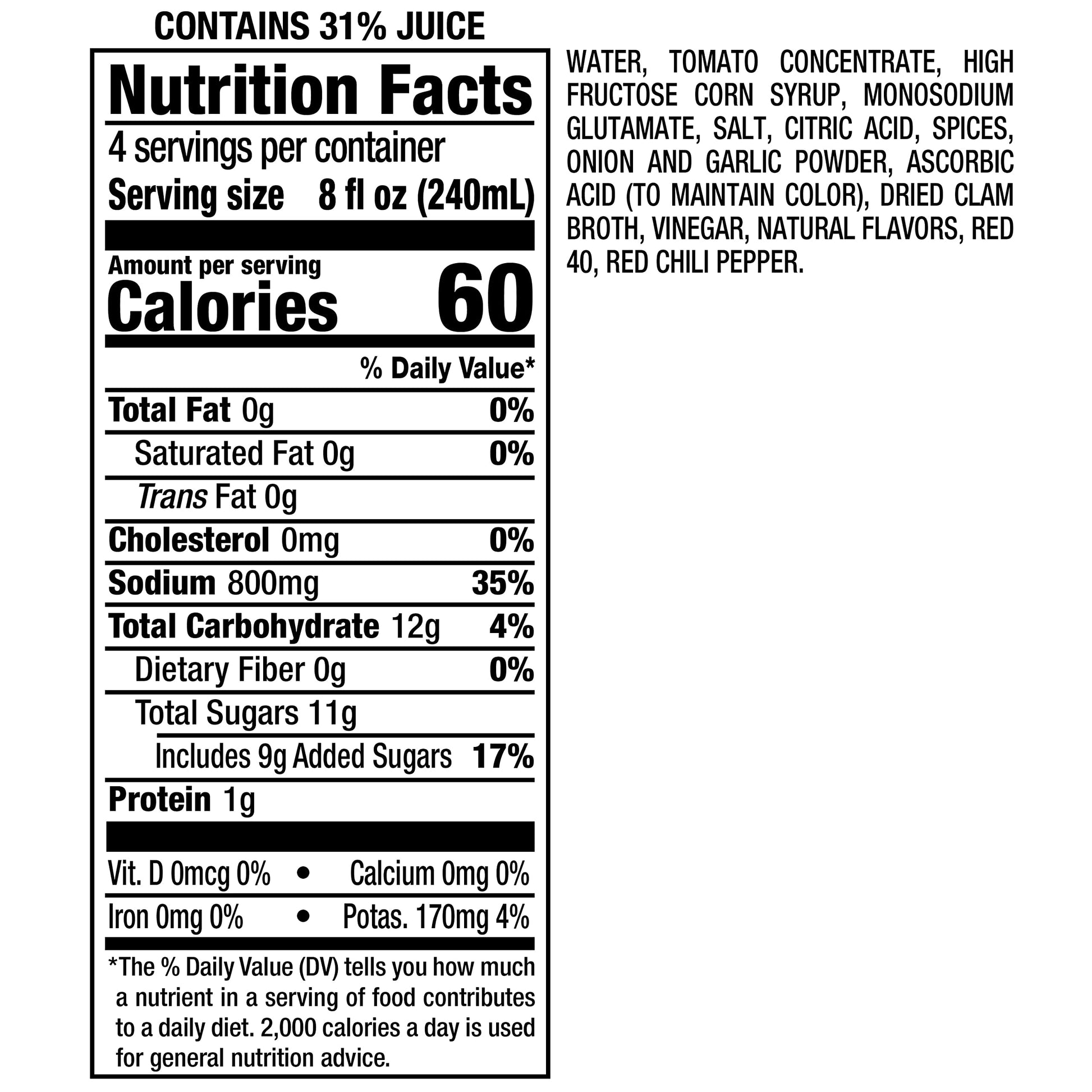 Clamato Cóctel de tomate lima, botellas de 64 onzas líquidas