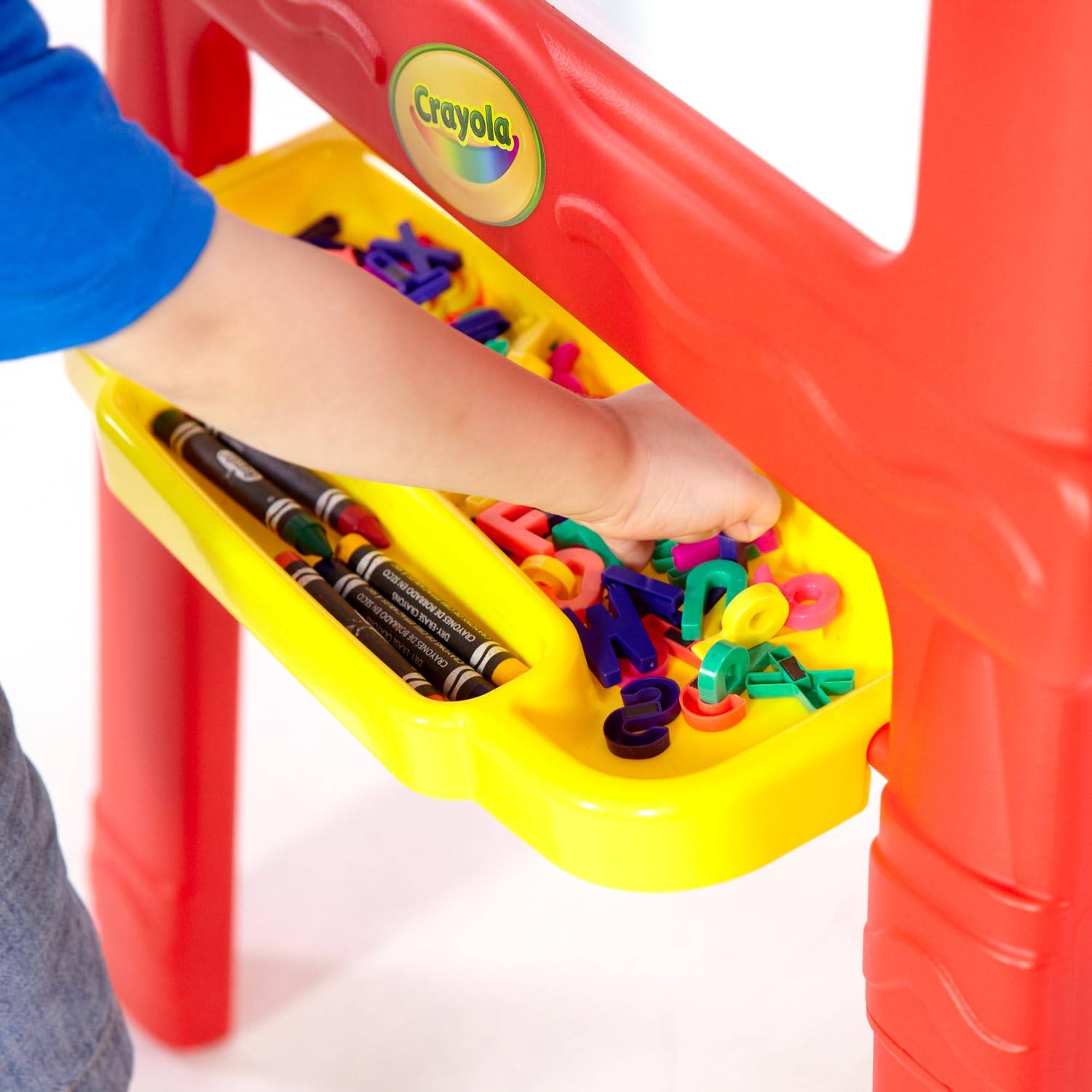 Creative Fun Caballete doble – borrado en seco magnético, pizarrón, 77 letras y números magnéticos, varillas de gis Crayola, engranajes magnéticos, 3+