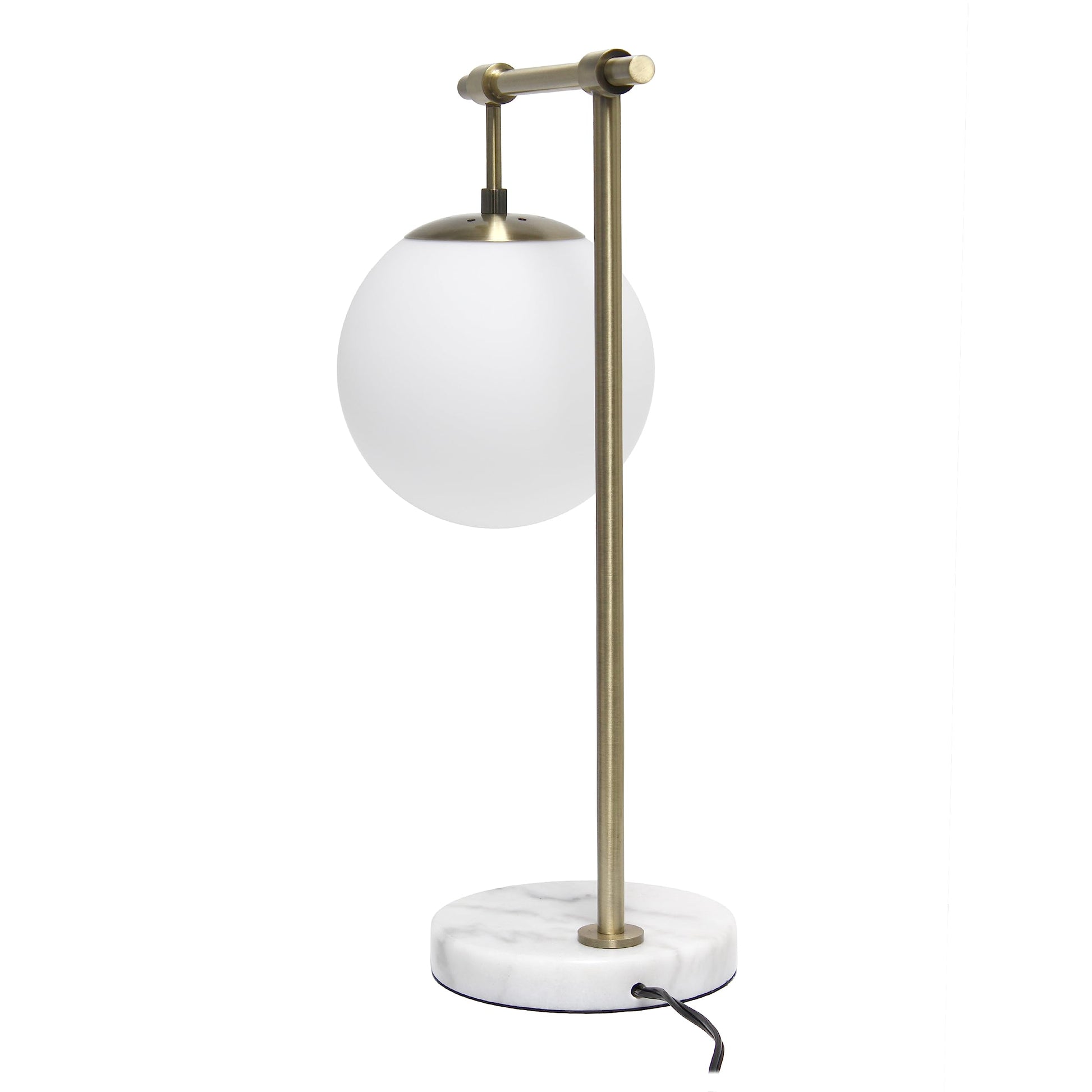 Elegant Designs LT2115-ABS - Lámpara de mesa moderna de vidrio blanco de mediados de siglo, con brazo de latón antiguo y base de mármol para estudio, sala de estar, recámara, entrada, latón antiguo