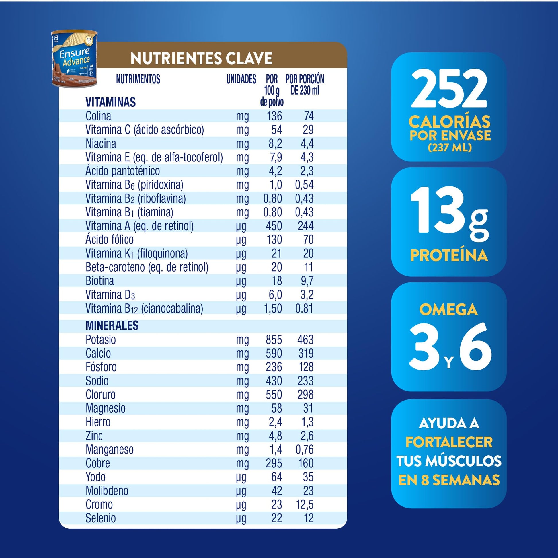 Ensure Advance - en Polvo 400g, Sabor Chocolate, Fuente de Proteínas y Nutrición Completa para Adultos, Clínicamente Probado