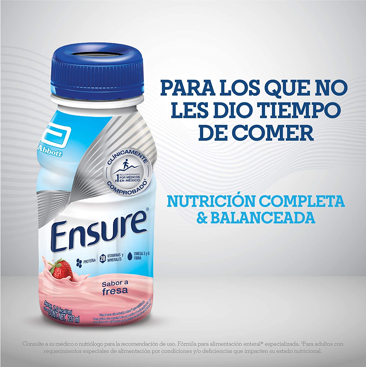 Ensure es alimentación especializada que cuenta con 9 gramos de proteína y 28 vitaminas y minerales por porción (237 ml) que te ayudan a mantenerte sano.