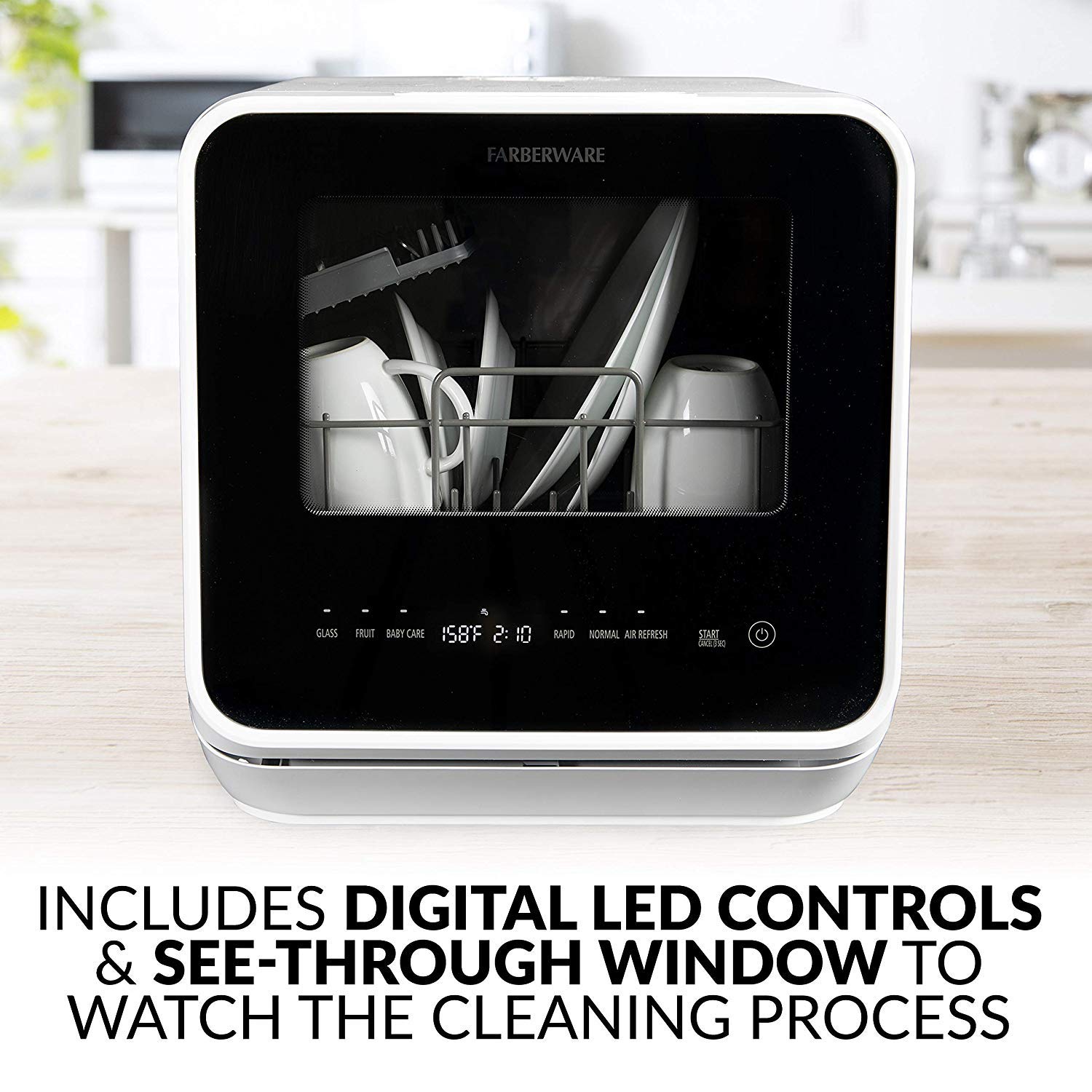 Farberware - lavaplatos portátil con depósito de agua integrado de 5 litros, sistema de 5 programas para el hogar, RV y departamento