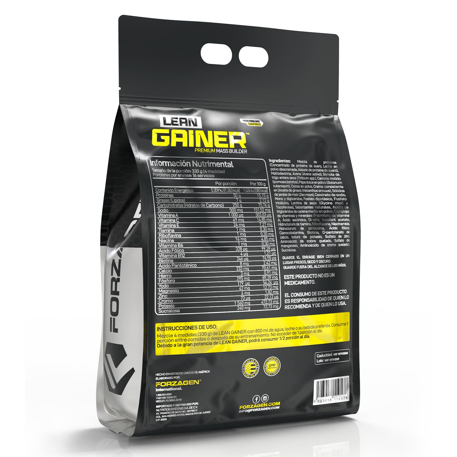 Forzagen | Ganador Lean Gainer | 50 g de Proteína | 250 g Carbs | 5.5 Servicios | Sabor Chocolate | Post Entenamiento | Carbs Naturales | 4lb (1.81 kg)