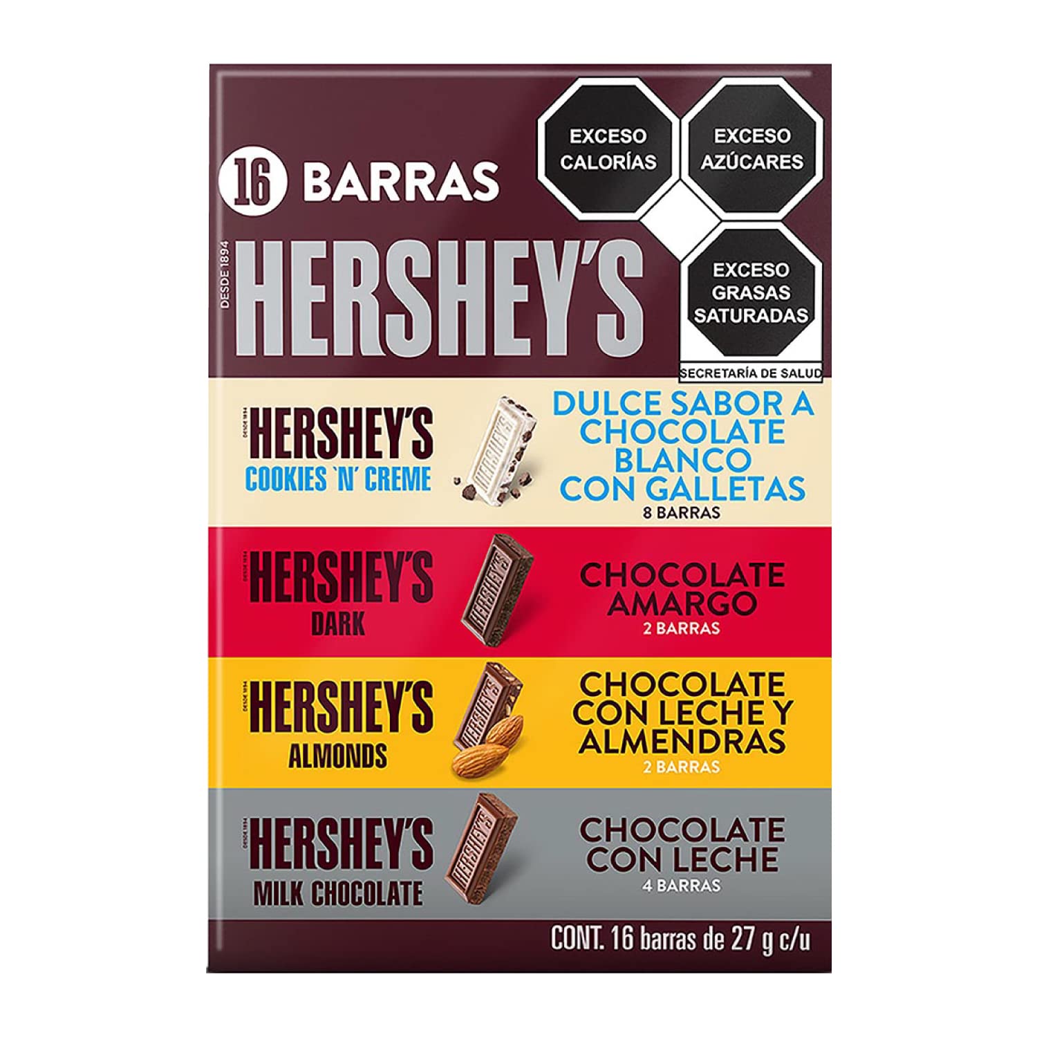 HERSHEY'S VARIETY PACK - Barras de Chocolate, Pack 16, 8 Chocolate Blanco con Galletas, 2 Chocolate Amargo, 2 Chocolate con Leche y Almendras, 4 Chocolate con Leche, 16x27 g