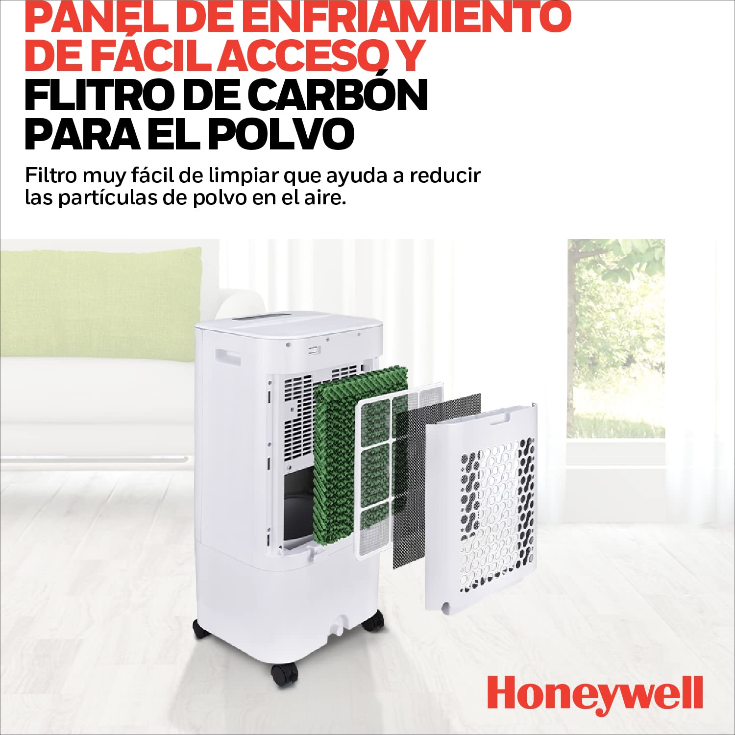 Honeywell Enfriador de Aire CL152 con Ionizador y Panel Antibacterial. 15 litros. Enfría hasta 19 m2