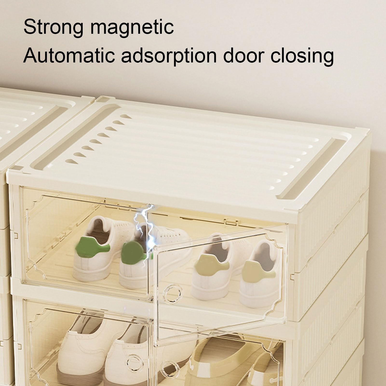 JTLB - Caja de zapatos plegable de doble fila, a prueba de polvo, con tapa magnética transparente para ropa, juguetes