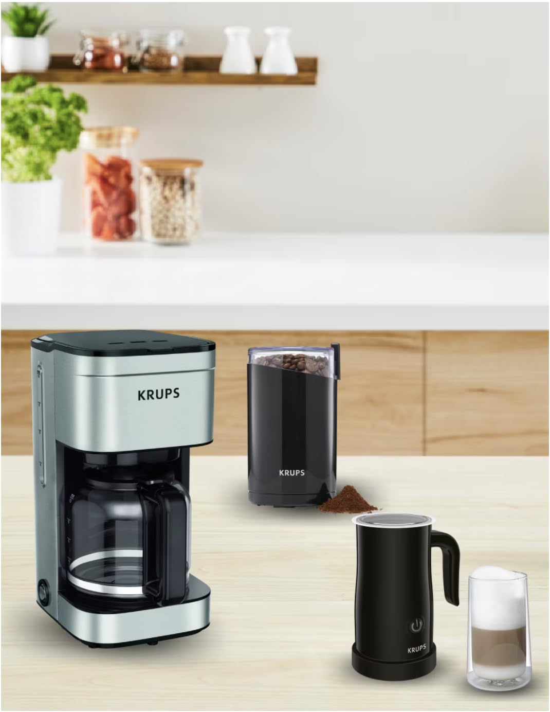 KRUPS Kit Cafetera Espumador de leche + Molino de café