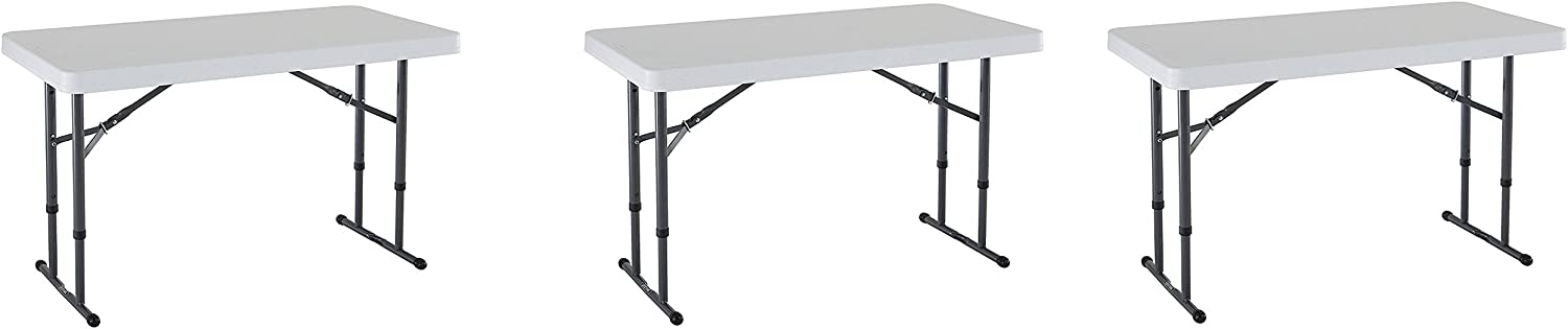 Lifetime 80161 - 4-Foot Comercial Altura Ajustable Mesa Plegable, 3Pack (White Granite), 3