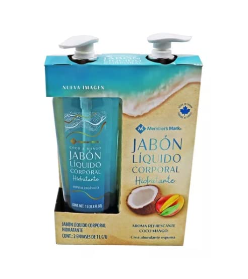Member´s Mark, 2 Botellas de Jabón Líquido Corporal, Coco, Mango Hidratante de 1Lt.