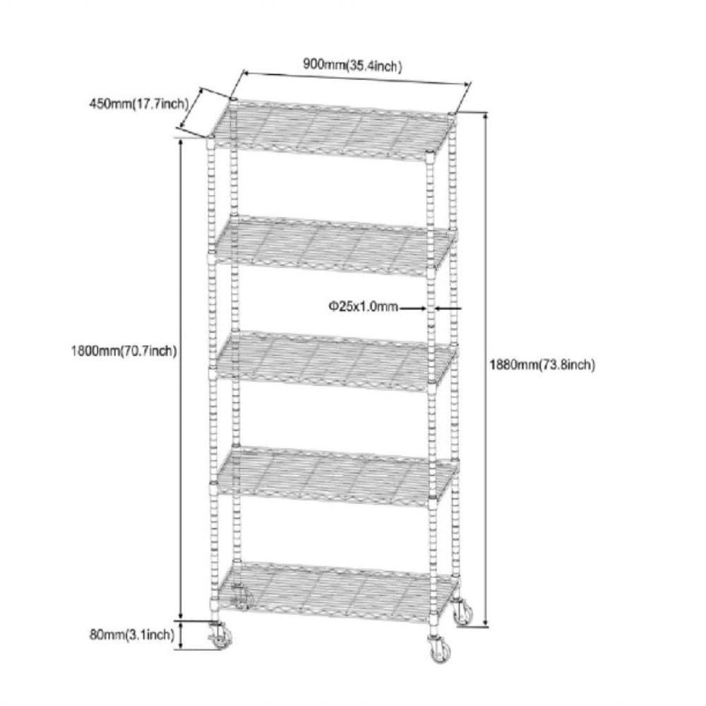 Members Choice - Members Choice Estante Anaquel Repisa Acero Cromado 5 Niveles con Llantas