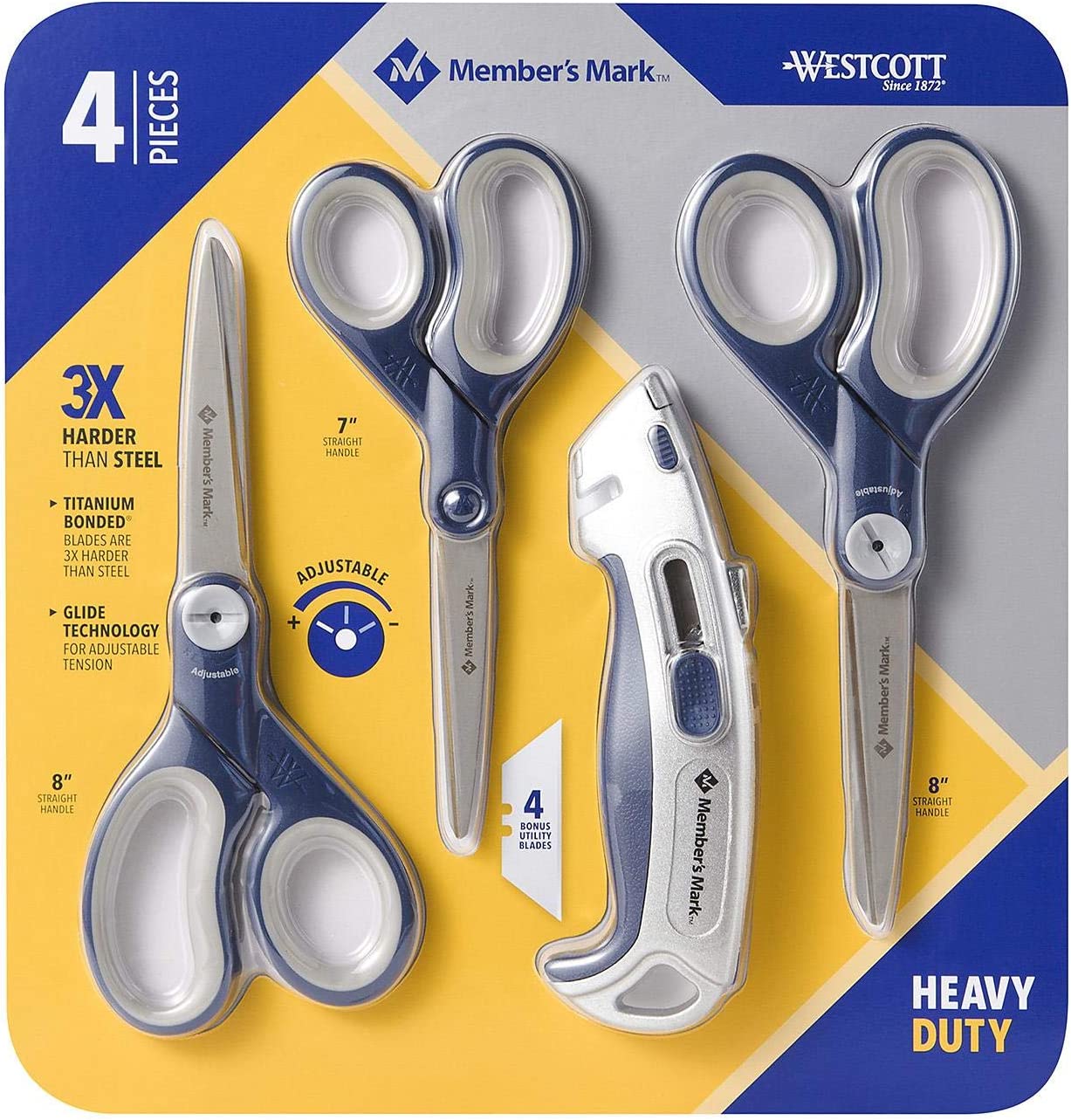 Member's Mark - Juego de tijeras y cortador de cajas (4 unidades), Marino