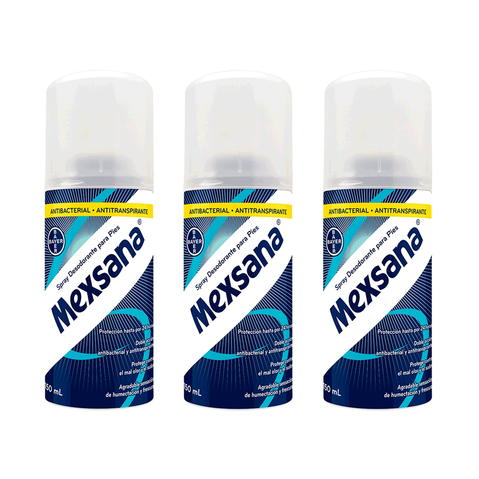 Mexsana Spray Desodorante para pies Antibacterial Antitranspirante 3 frascos de 150ml cada uno