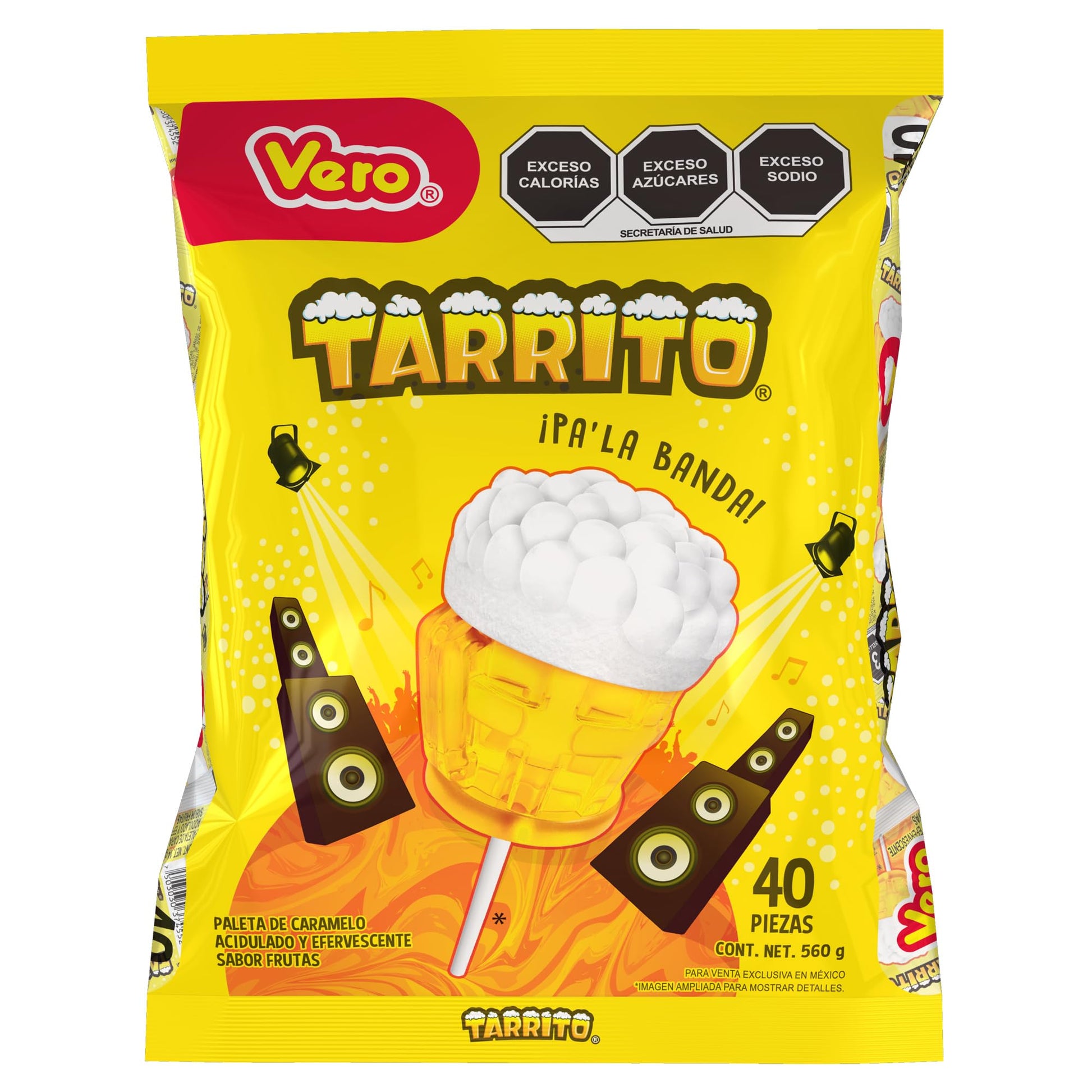 Paleta Tarrito de caramelo Acidulado y Efervescente sabor frutas, Bolsa 40pz de 14g c/u
