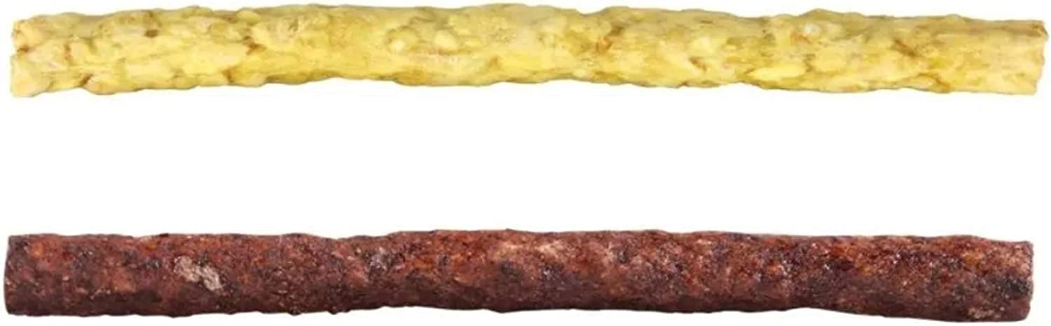 - Palitos de carnaza molida y comprimida sabor a pollo y/o carne, 100% digerible, adicionada con vitaminas (B1,B2) y minerales (Calcio y Potasio)