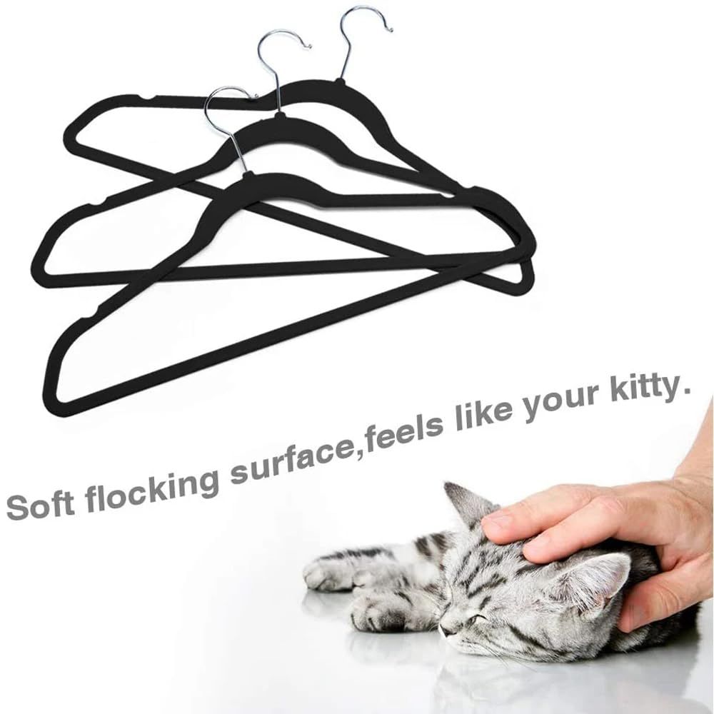 Atractiva percha de Terciopelo Negro: El diseño del contorno del hombro en las perchas de ropa de terciopelo de lujo súper suave evita que la ropa se deforme o arrugue (sin marca), hace que el armario sea elegante. Ideal para vestidos de mujer, camisetas sin mangas, trajes, camisas, abrigos, pantalones, vaqueros, faldas, camisolas, chaquetas, suéteres, blusas de hombre y conjuntos, etc.