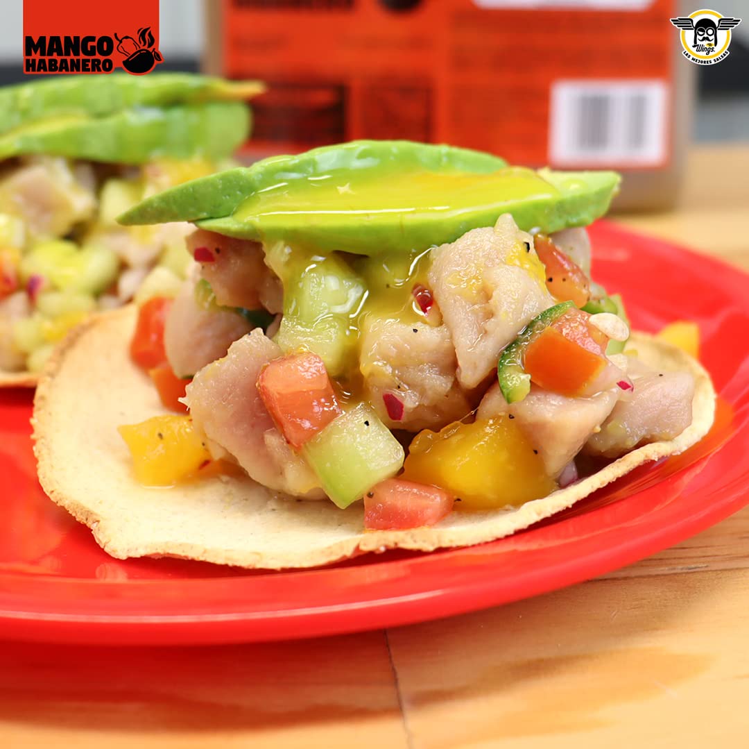 Salsa mango habanero para alitas, botanas y más. Mr Wings con pulpa 100% natural de MANGO y habanero. 1 Galón (4.2 Kg)