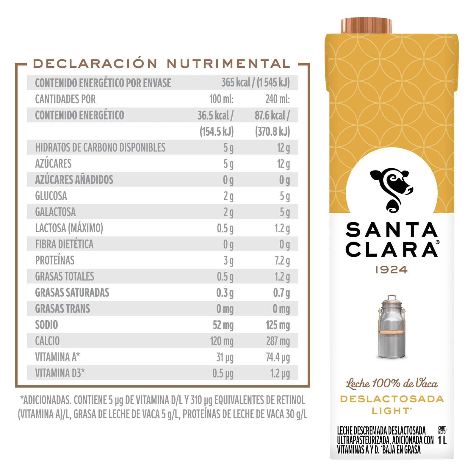 Santa Clara 12 Pack Leche Deslactosada Light 1 Lt cada uno.