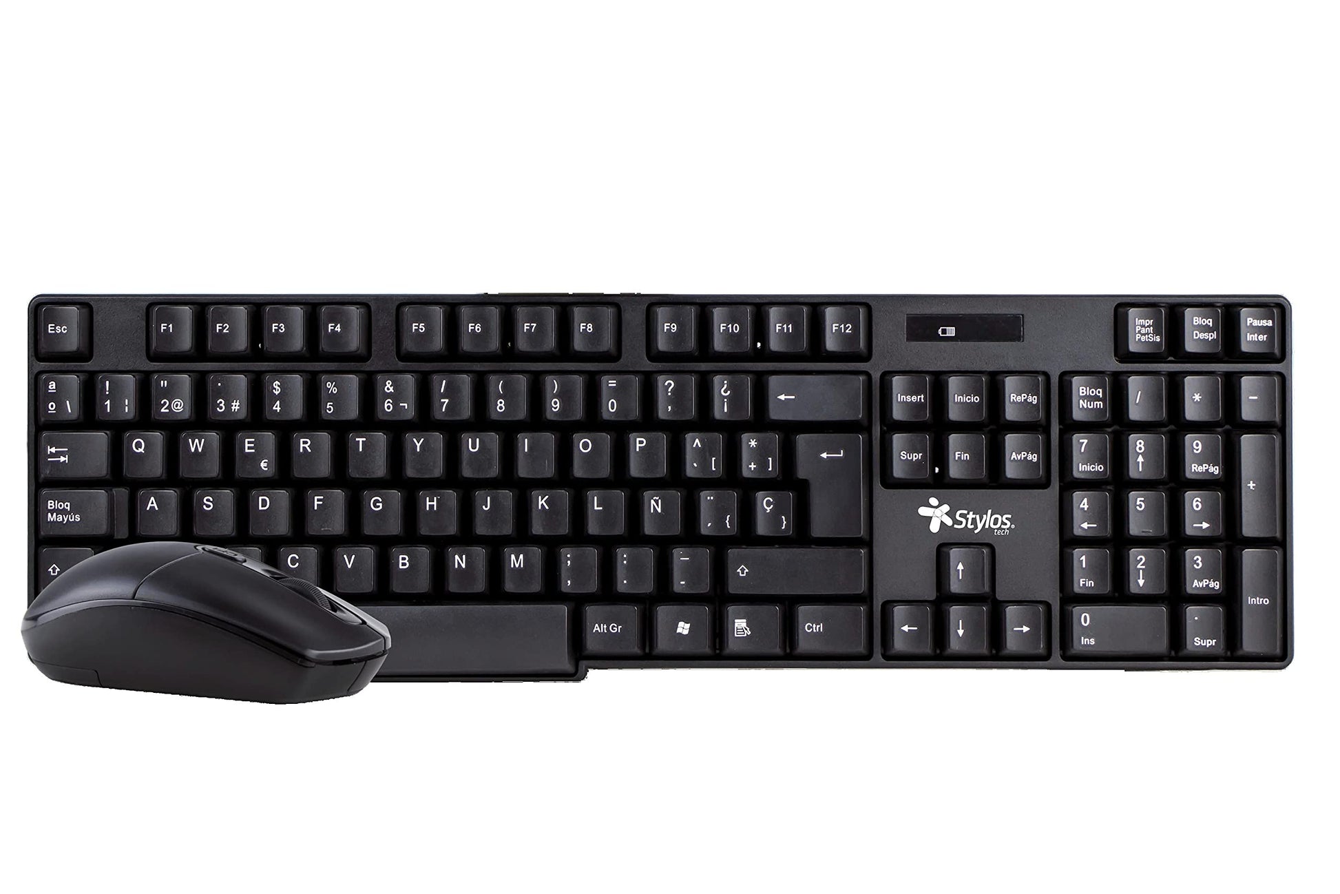 Stylos STPKTM3B Kit Teclado y Mouse Inalámbrico 105 Teclas 1200 dpi USB Nano Alcance 10m Color Negro