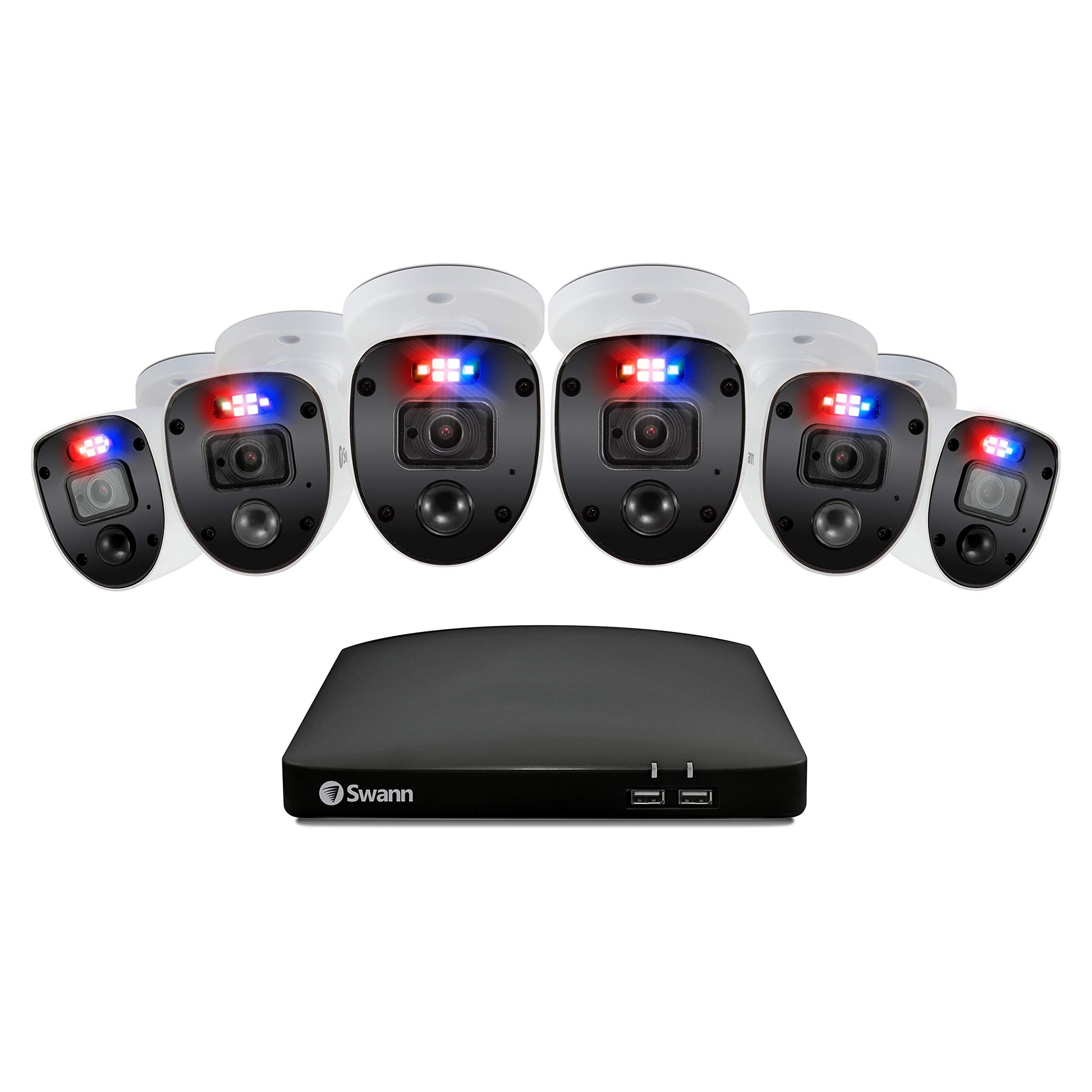 Swann Home DVR Sistema de cámara de seguridad con disco duro de 1 TB, 6 cámaras de 8 canales, video Full HD de 1080p, CCTV con cable para interiores y exteriores, visión nocturna a color, detección de
