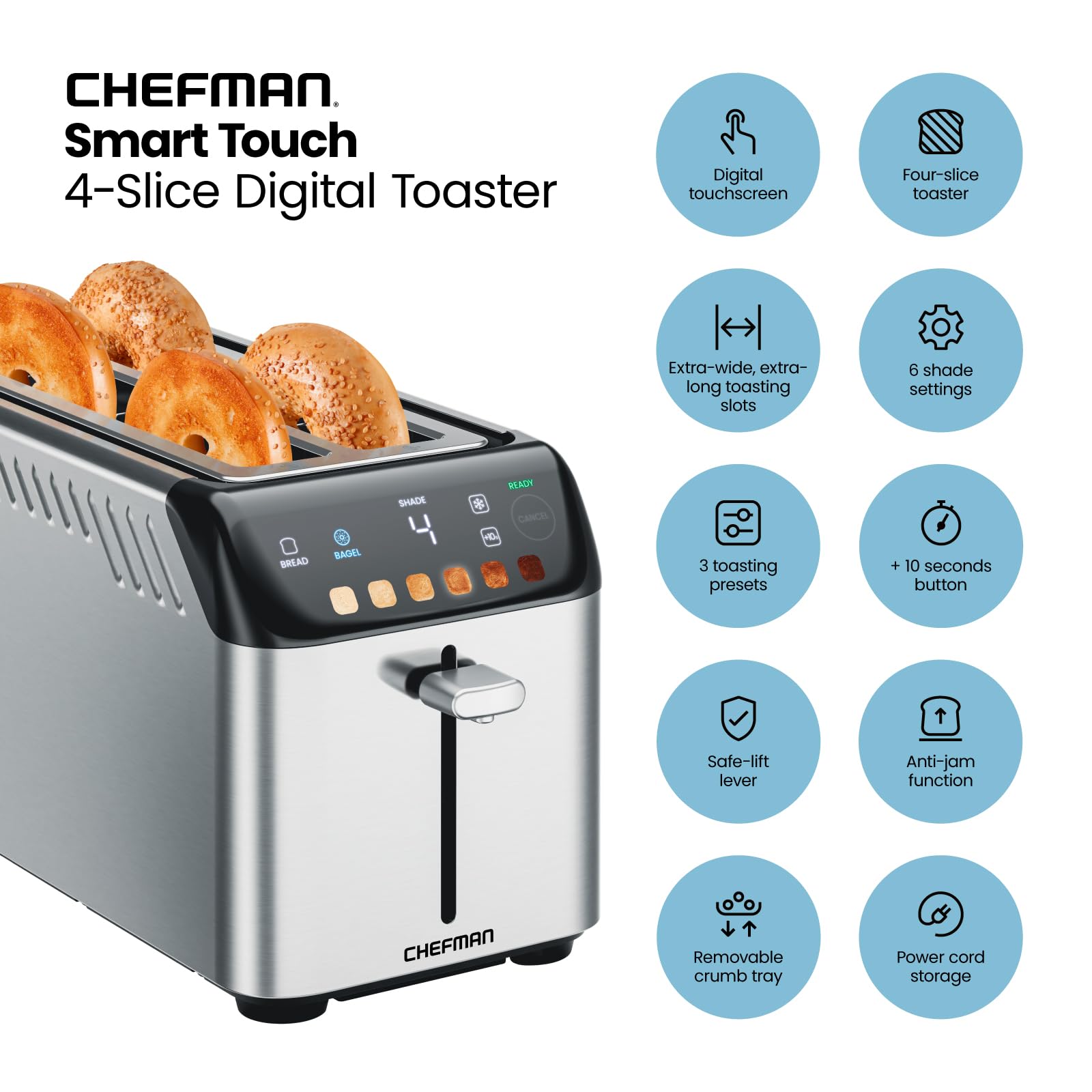 Tostadora digital de 4 rebanadas, 6 ajustes de sombra, tostadora de acero inoxidable con ranuras extra anchas, tostadora de pan grueso y tostadora de bagel, descongelación, bandeja para migas migas