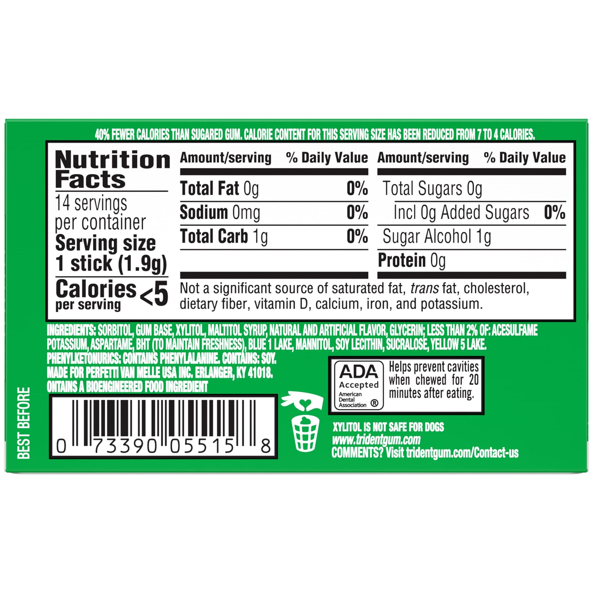 Trident Spearmint goma sin azúcar, 12 paquetes de 14 piezas (168 piezas en total)
