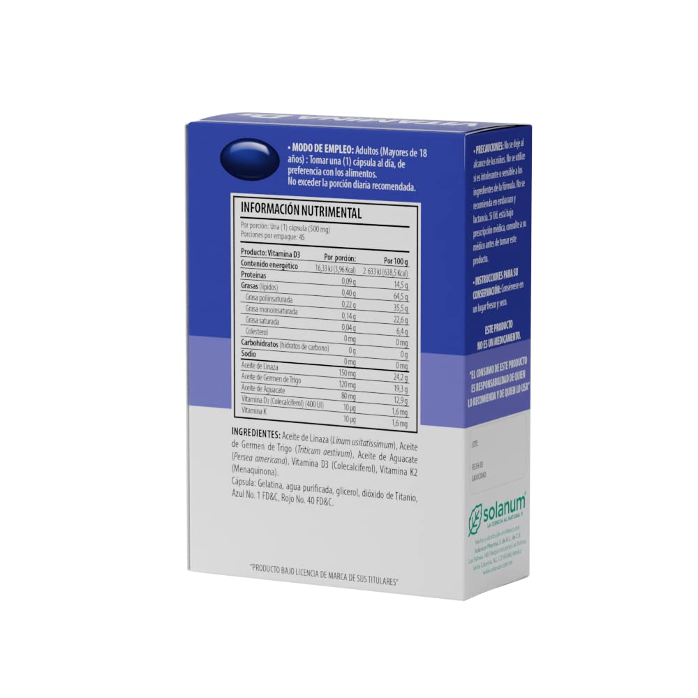 Vitamina D3 + Vitamina K2 45 Cápsulas by Solanum