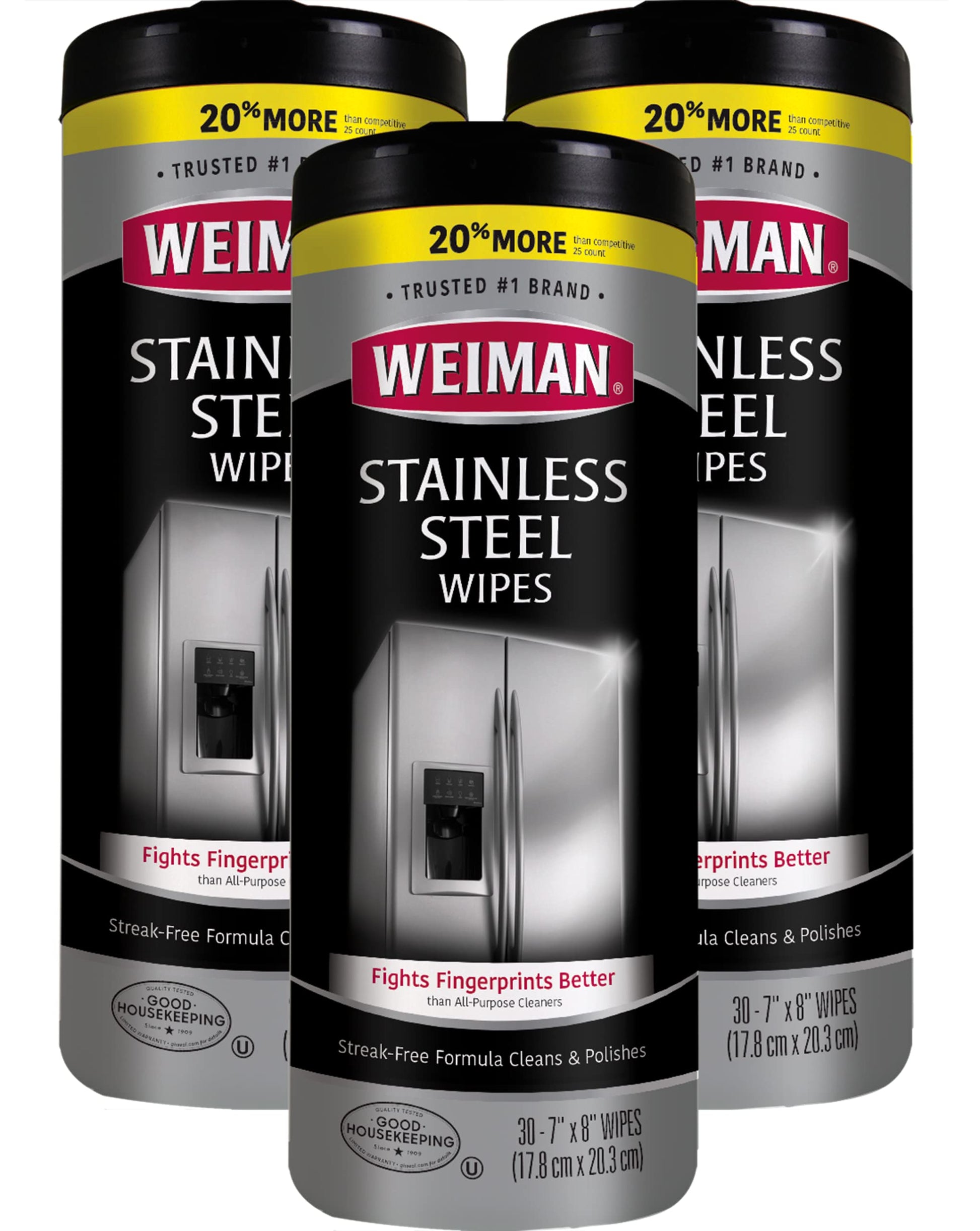 Weiman Stainless Steel Cleaner Wipes (3 Pack) Removes Fingerprints, Residue, Water Marks and Grease from Appliances - Works Great on Refrigerators, Dishwashers, Ovens, and Grills